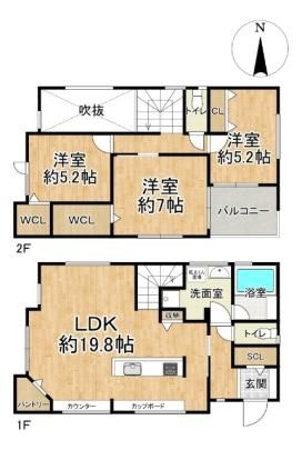| 築年月 | 2023年7月 | 間取り | 3LDK( LDK19.8畳/洋室7畳/洋室5.2畳/洋室5.2畳 ) | 専有面積 | 96.38m2 |