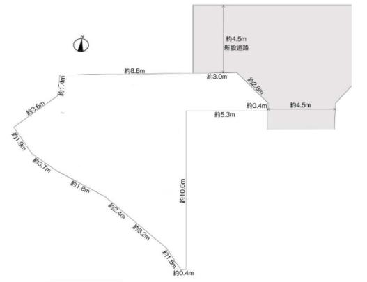 接道状況 | 接道: 北 3m 私道 道路幅: 4.5m 接道: 東 0.4m 私道 道路幅: 4.5m |