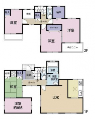 2階洋室を2部屋に隔てて3LDKから4LDKへの変更も可能!