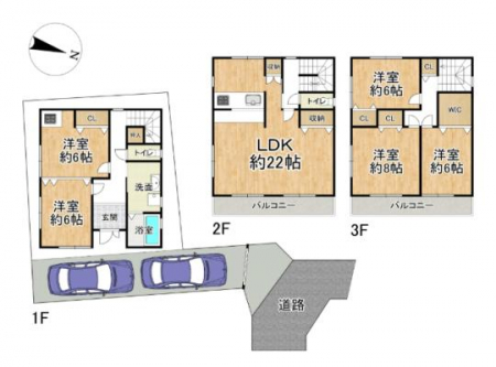 | 接道状況 | 接道: 東 15.2m 公道 道路幅: 5.9m 接道: 北 9.1m 公道 道路幅: 8.4m 接道: 西 13.8m 公道 道路幅: 9.9m |