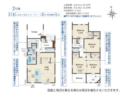 土地面積 | 105.01m² (31.77坪) | 建物面積 | 105.38u |