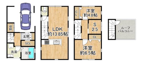 合計床面積70平米超!3階建てルーフトップ付の快適な住まい 。