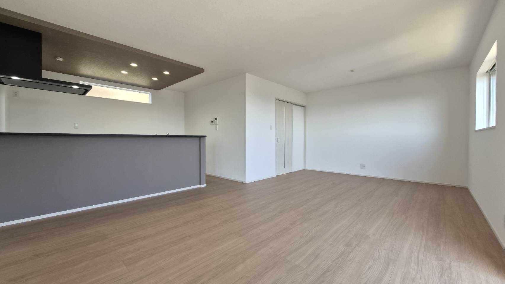 2面採光で明るく開放的な空間の約20帖のリビング!
