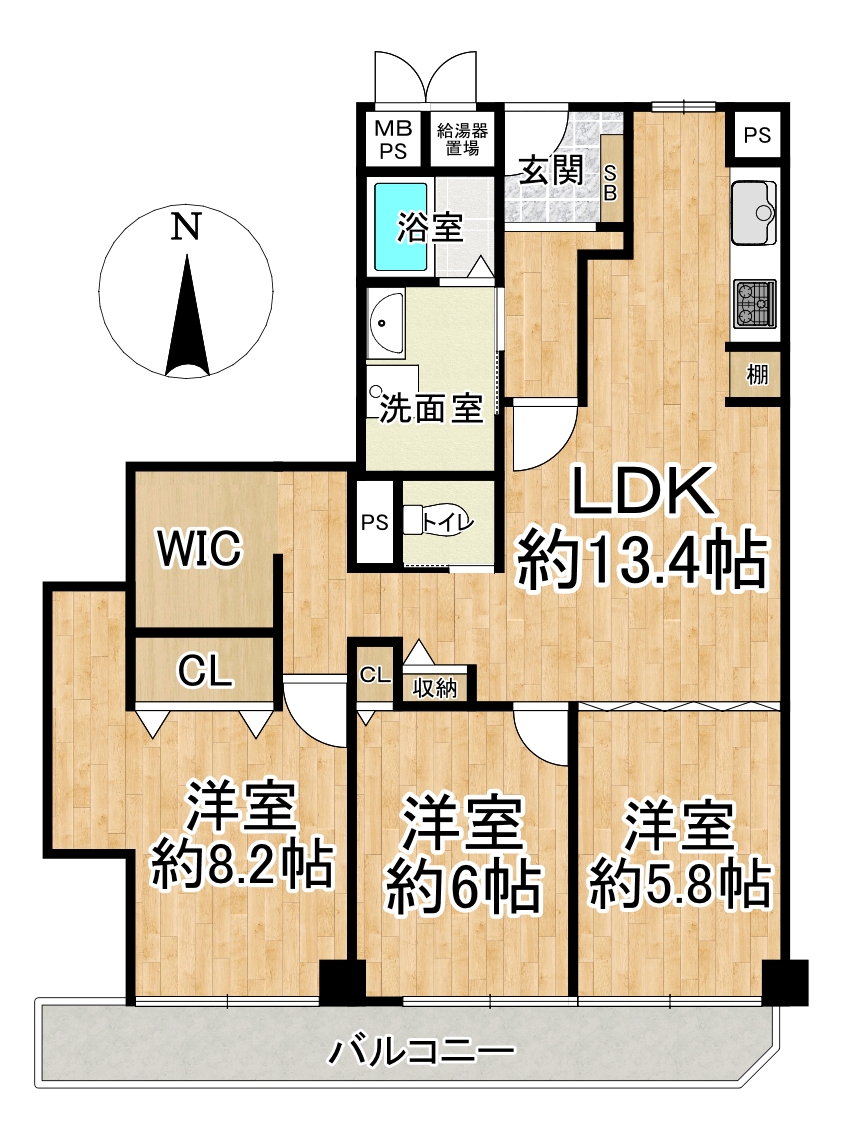 約8.2帖の広々とした洋室や大容量のWICなど、ゆとりある暮らしを叶える設備も充実。