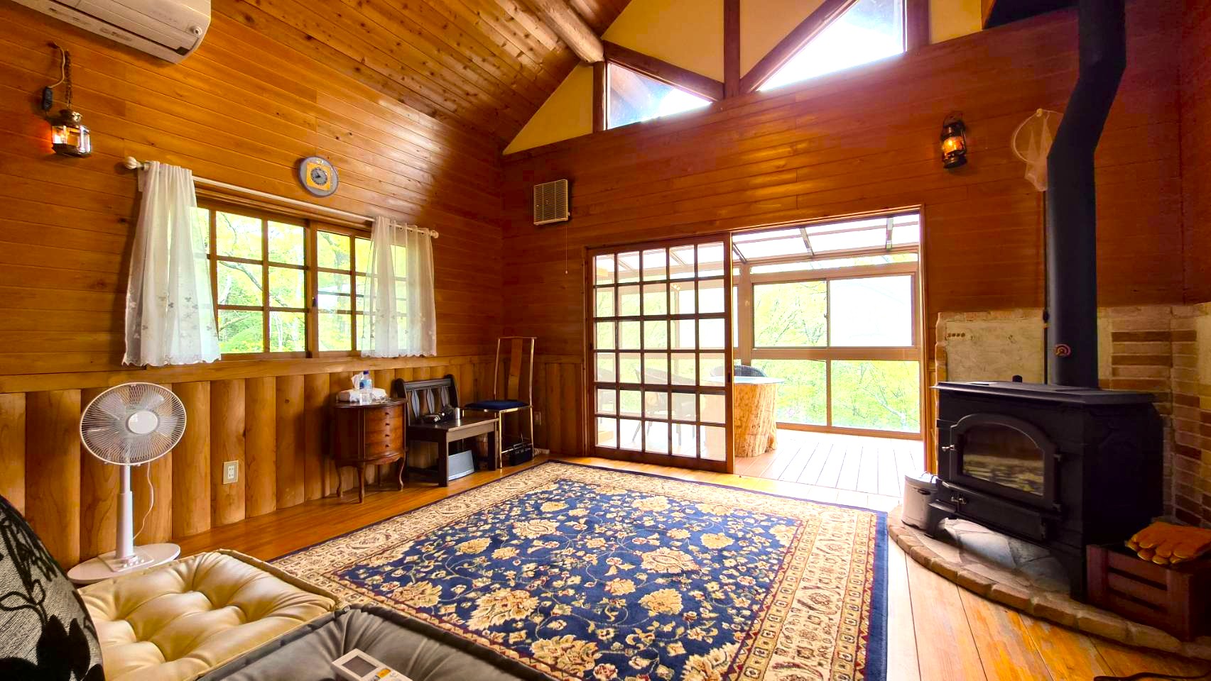高い天井がさらなる開放感を生み、薪ストーブの炎が心を穏やかに溶かしてくれます。